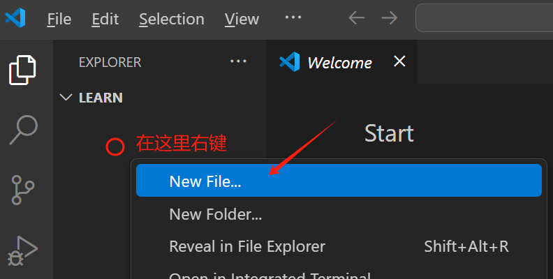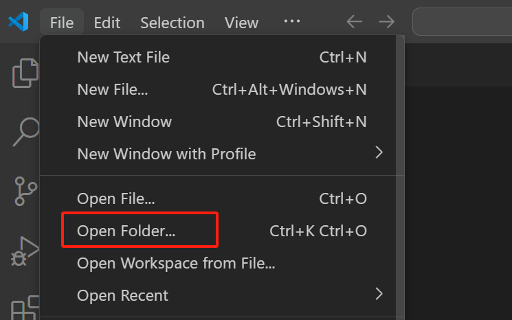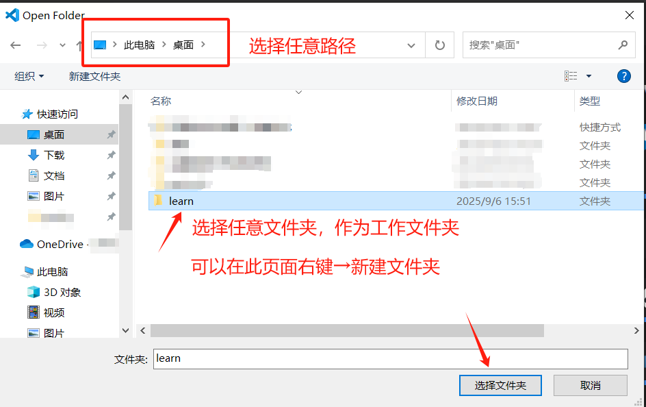 首先,在VS Code中打开任意文件夹作为当前工作文件夹,后续文件将保存在这个文件夹中。