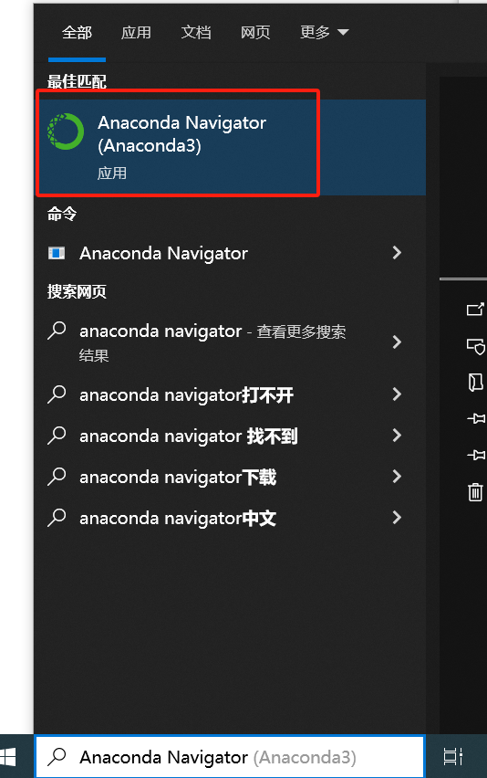 在系统开始菜单搜索Anaconda Navigator,如果有,则说明已安装完成。
